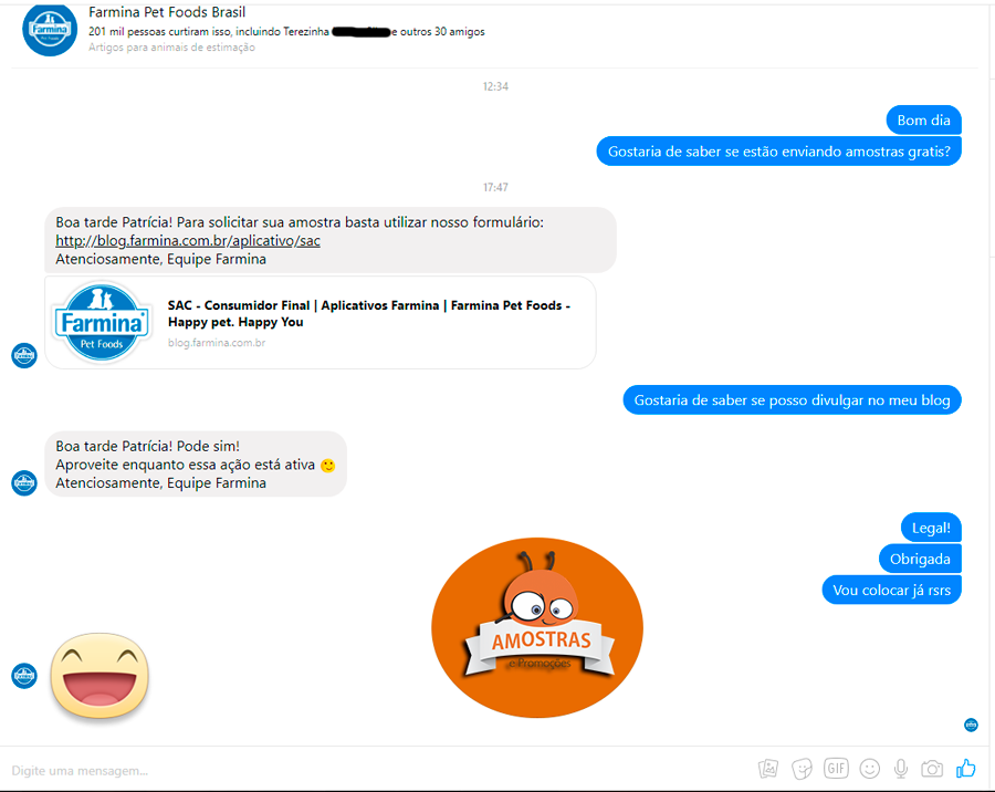 E para que você possa conhecer os produtos da FarminPet Foods, a empresa está disponibilizando amostras grátis de rações para cães e gatos. Peça sua amostra grátis e veja como seu animalzinho vai agradecer!!!