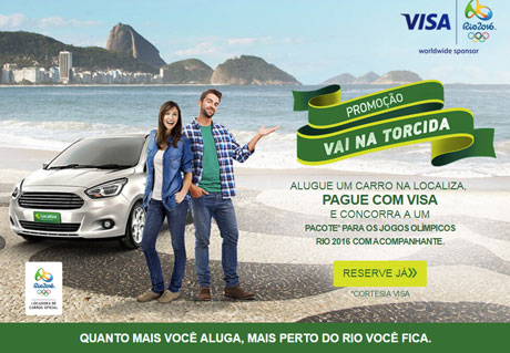 Promoção Localiza: Vá às Olimpiadas! Na Promoção “Vai na torcida, vai de Localiza”, você concorre a: 2 Viagens com direito a um acompanhante, para os Jogos Olímpicos Rio 2016, no …