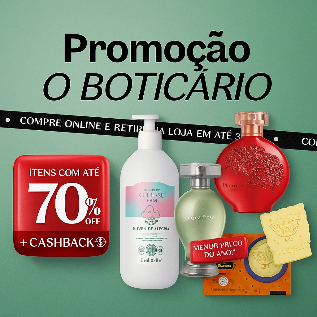 Além dos descontos, o Boticário está oferecendo cashback, ou seja, parte do valor das suas compras volta para você usar em futuras compras.