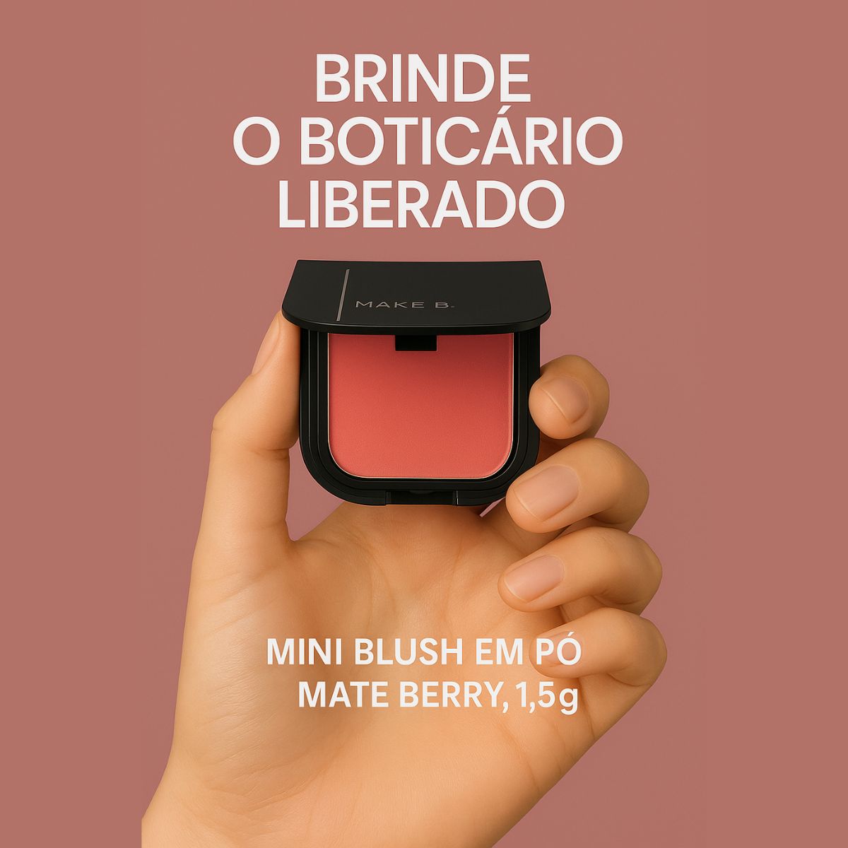 O O Boticário liberou uma promoção nacional imperdível! Entre os dias 29 de setembro e 19 de outubro de 2025, os consumidores podem resgatar seu brinde, o Make B. Mini Blush Mate Berry (1,5g) pelo aplicativo da marca. São 800 mil brindes disponíveis em todo o Brasil, e cada CPF cadastrado pode garantir apenas uma unidade.