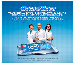 Como de costume, irei apresentar no blog promoções e brindes. Uma que está dando o que falar é a do creme dental Oral B, ela está distribuindo amostras grátis e ainda concorremos a prêmios de kits toda a semana.