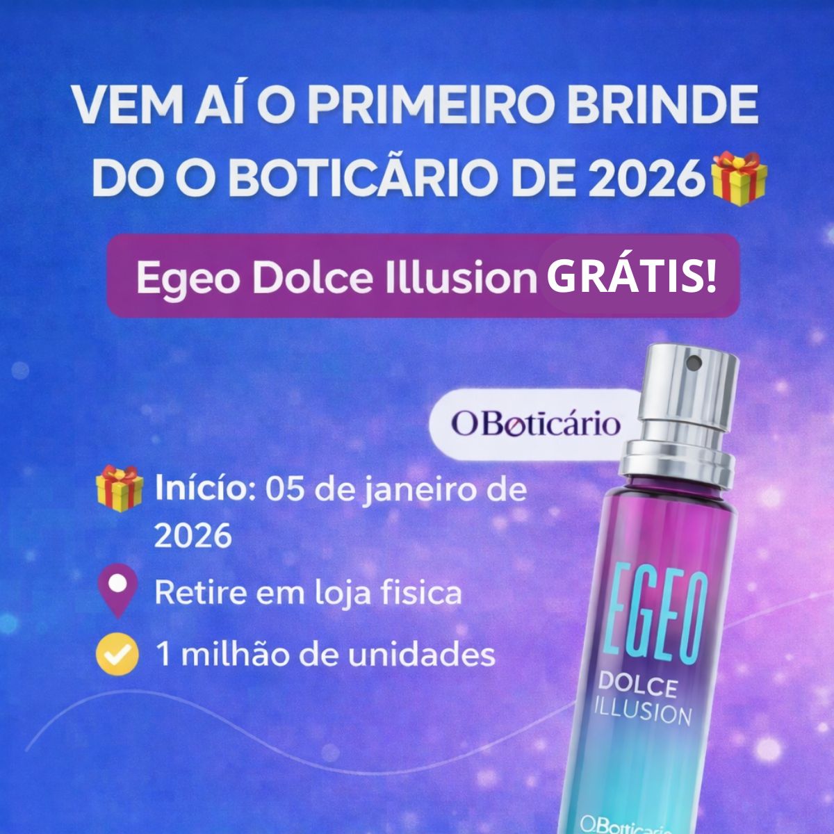 Primeiro brinde Grátis do Boticário de 2026: Egeo Dolce Illusion!