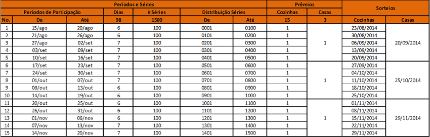 - 15 certificados de barras de ouro no valor unitário de R$ 10.000, com sugestão de uso para a compra de uma cozinha com geladeira, fogão, micro-ondas e lava-louças da linha inox