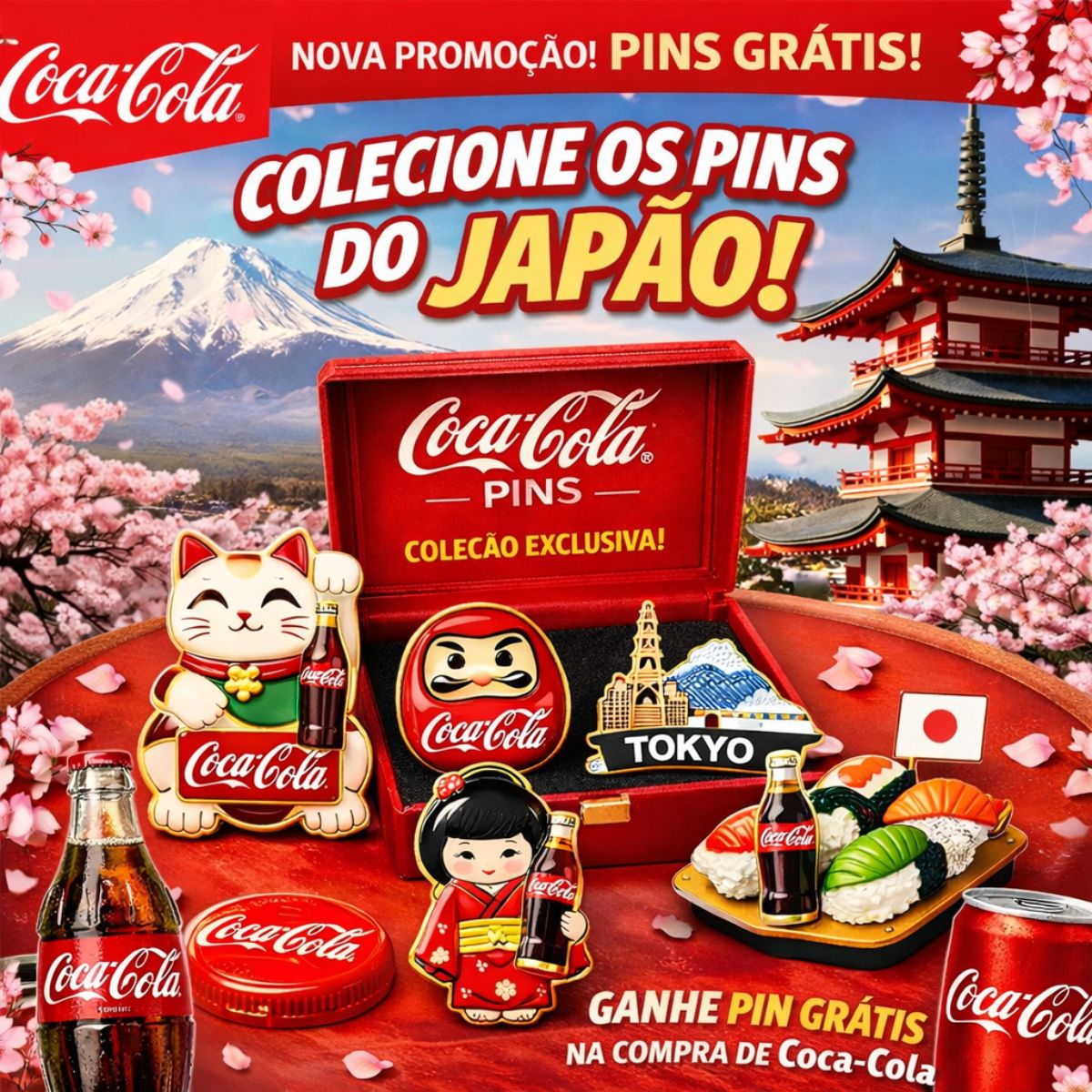 A Coca-Cola lançou no Brasil a promoção “Pins Japão Coca-Cola”, que oferece brindes exclusivos aos consumidores durante o período promocional. A ação acontece de 17 de janeiro a 15 de fevereiro, ou enquanto durarem os estoques, e é válida em todas as lojas Daiso participantes do país.