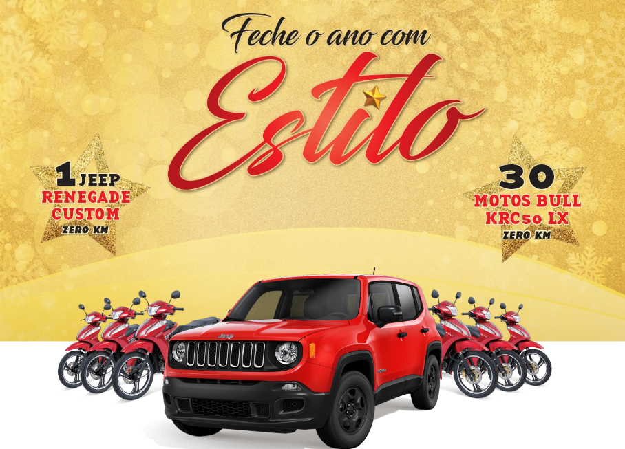 A Besni está com uma promoção incrivel. A cada R$200 Reais em compras você já concorre. Serão sorteadas 10 motos 0km a cada sorteio periódico, totalizando 30 prêmios, e 01 Jeep Renegade Custom 0km no sorteio final da promoção.
