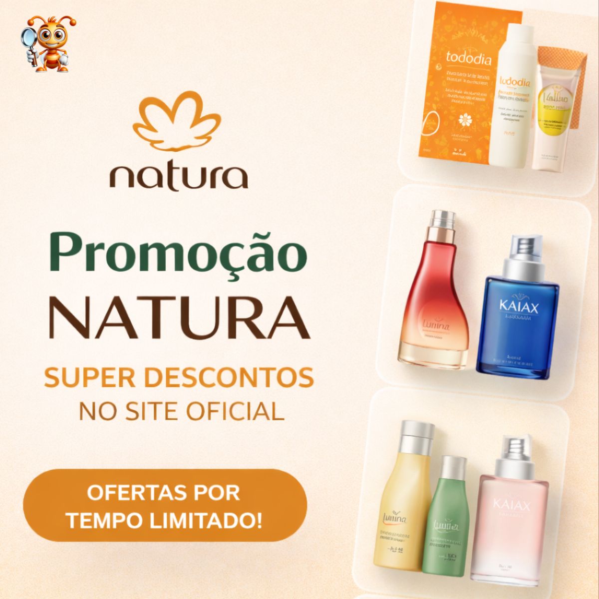 A Natura está com diversas promoções ativas em seu site oficial, reunindo descontos especiais em perfumes, kits presenteáveis, cuidados com a pele, corpo e maquiagem. As ofertas são por tempo limitado e podem variar de acordo com a disponibilidade de estoque. A promoção é ideal para quem deseja economizar em produtos queridinhos da marca, aproveitar preços reduzidos para uso pessoal ou garantir presentes com ótimo custo-benefício.