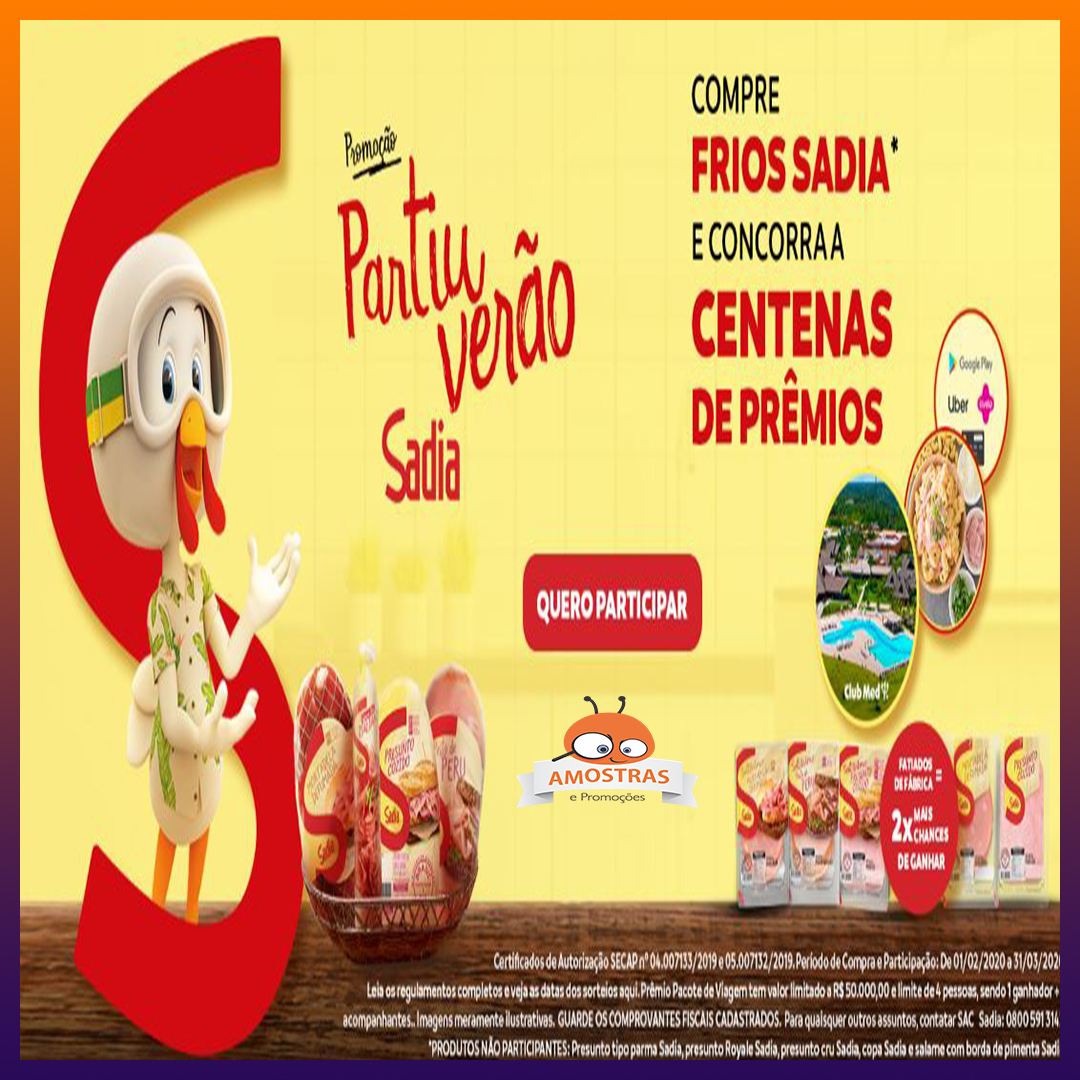 A Sadia está com uma promoção incrível na qual, na compra de R$ 15,00 em frios SADIA você concorre a CENTENAS DE PRÊMIOS INSTANTÂNEOS TODOS OS DIAS, 1 VIAJEM PARA TODA A FAMÍLIA E 1 EXPERIÊNCIA GASTRONÔMICA com a SADIA por mês!