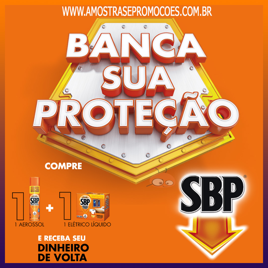 Participe da incrível Promoção SBP Banca Sua Proteção, na qual você comprando Aerossol SBP Multi Inseticida e Repelente Elétrico Líquido SBP em uma mesma nota fiscal você recebe seu dinheiro de volta.