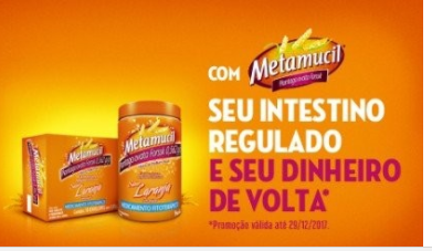 Você adquire uma vida saudável com metamucil e seu dinheiro de volta! Promoção válida até 29/12/2017.