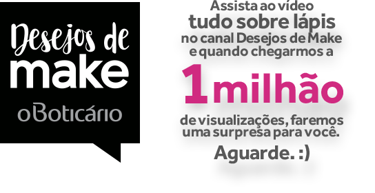 A boticário está preparando uma bela surpresa! Para descobrir, basta assistir a um vídeo sobre lápis no canal desejos de Make, e, após atingir um milhão de visualizações, saberemos a surpresa! Tudo indica ser uma promoção! Participe!