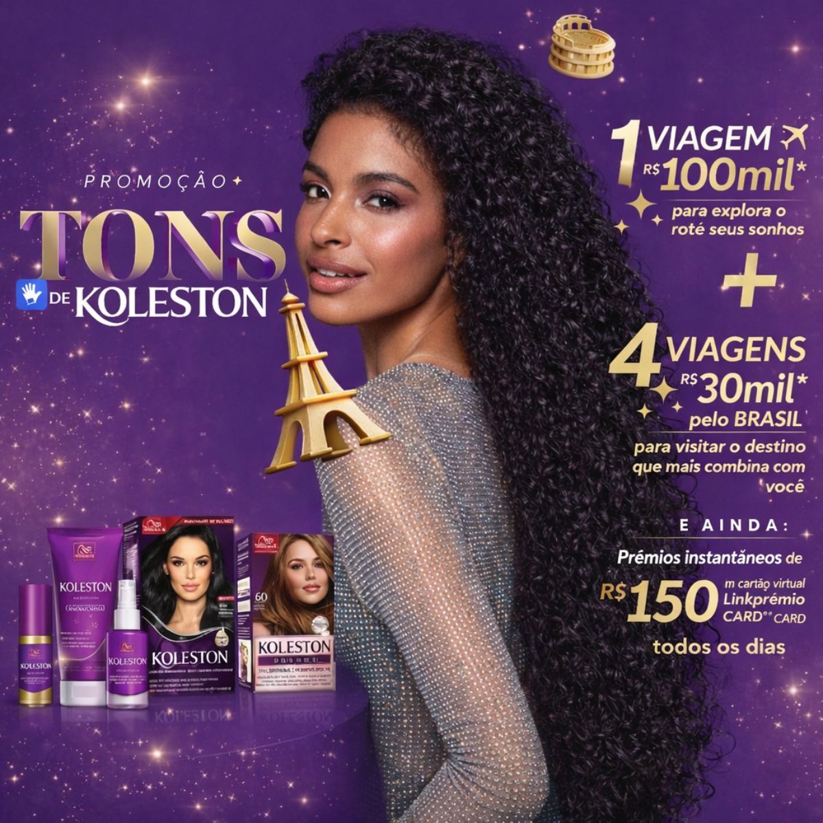 Se você ama cuidar dos cabelos e ainda quer ter a chance de ganhar prêmios, a promoção Tons de Koleston é a oportunidade perfeita. A campanha da Wella Koleston está válida em todo o Brasil e oferece uma viagem para a Europa, uma para o Brasil e 2.205 cartões virtuais de R$ 150 para os consumidores participantes. Participe e concorra aos prêmios!