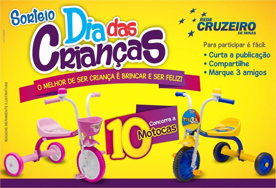 A rede Cruzeiro em comemoração ao dia das crianças está sorteando 10 motocas!