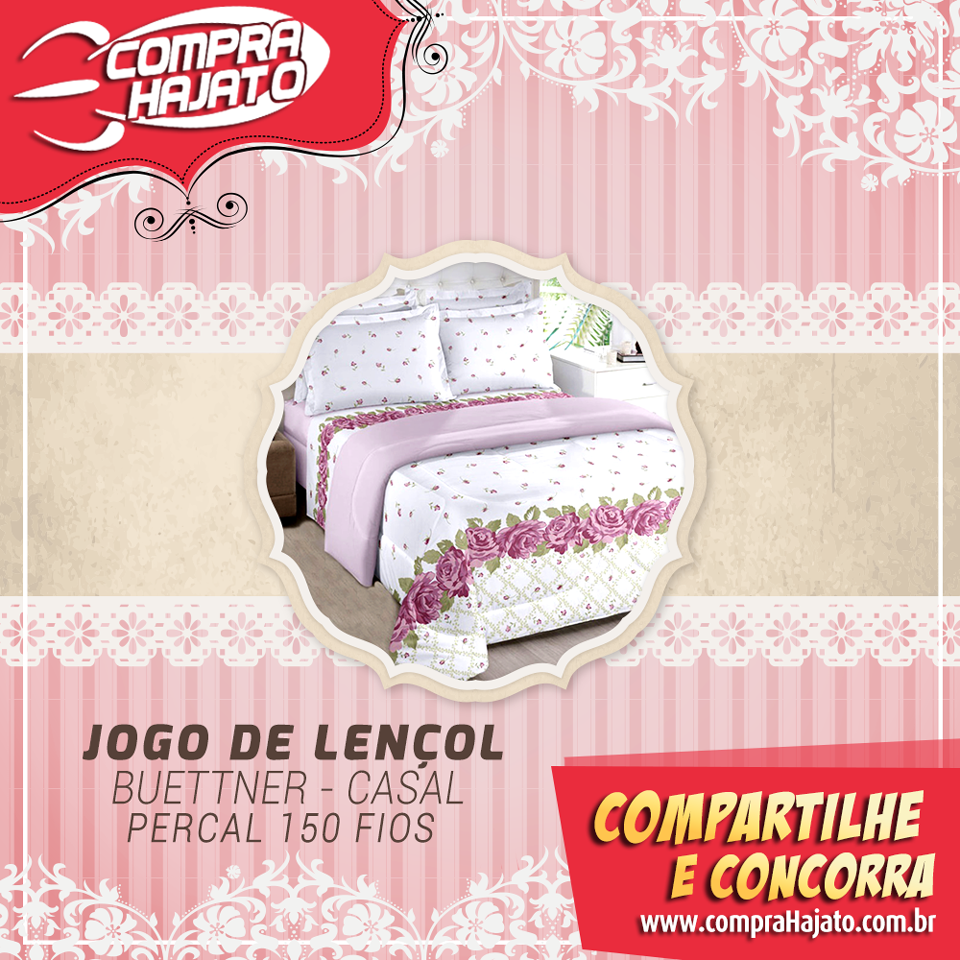 A página da Compra hajato está sorteando um lindo jogo de lençol buettner – casal – percal 150 fios.