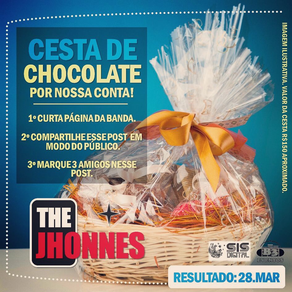 Quer participar do SORTEIO DE PÁSCOA e ganhar essa maravilhosa cesta de chocolates? A Fan Page da Banda The Jhones está oferecendo esse presentão para seus fãs!Eles gostam muito de seus fãs e amigos, e para retruibuir o carinho, nada mais justo a TheJhonnes deixar a sua vida mais doce. Estão sorteando essa maravilhosa cesta de chocolate recheada de coisas gostosas.