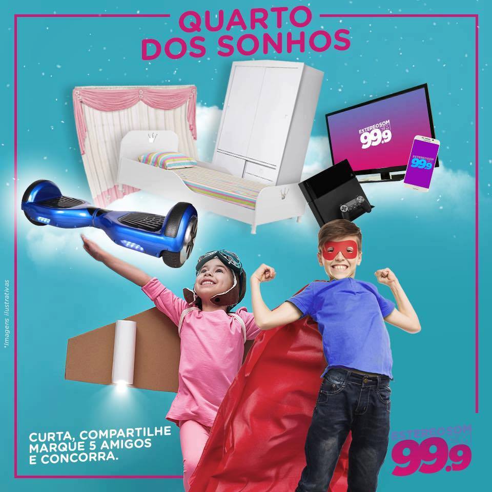A Estereosom está com uma mega promoção!  Vai deixar tudo novo no quarto da criançada: papel de parede, cama, guarda-roupas, cortina, televisão, vídeo-game, skate elétrico, celular e muito mais!