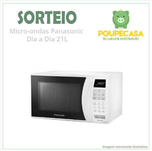 A Poupecasa irá sortear dia 05/02/2018 as 20:00 horas, em uma Live, um micro-ondas de 21 litros da Panassonic. Participe!