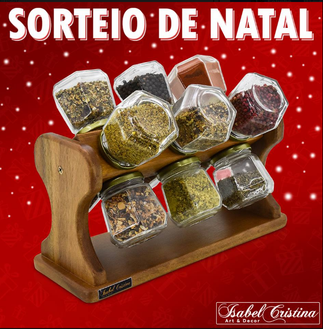 A Página Isabel Cristina Art e Decor, está sorteando um Porta Tempero de Madeira com 12 Potes ( produto exclusivo Isabel Cristina Art e Decor).
