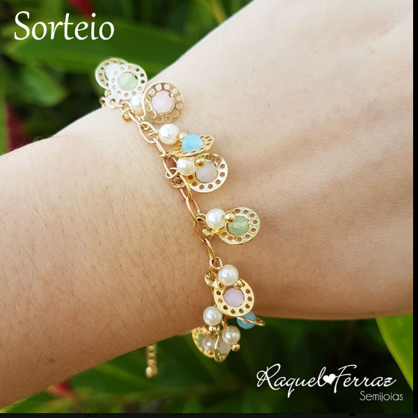 A Página Raquel Ferraz Semijoias irá sortear no dia 08/02/2018 AS 10 HORAS, uma linda pulseira com vários pingentes pendurados.
