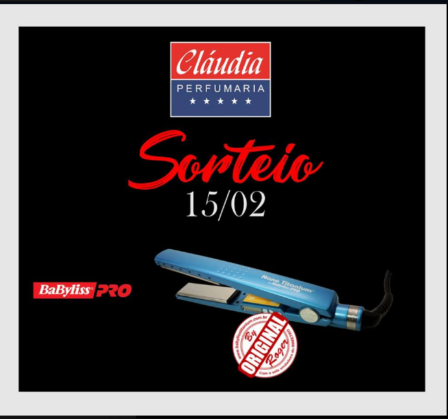 A Cláudia Perfumaria dia 15 de Fevereiro irá sortar Uma Prancha Baby Liss Nano Titanium By Roger: Participe!