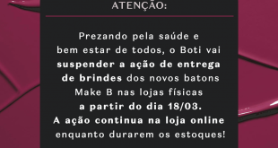 BRINDE BOTICÁRIO: Suspenso devido Coronavírus. Aguarde novidades ATENÇÃO: O Boticário anunciou em sua página no Facebook, que a ação de entrega de brindes dos novos batons Make B nas lojas …