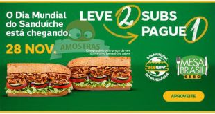 PROMOÇÃO SUBWAY: Dia 28/11 LEVE DOIS SUBS E PAGUE UM. GARANTA O SEU! Participe dessa deliciosa promoção da Subway no dia 28/11 que é o “Dia Mundial do Sanduíche” no Subway, …