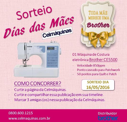 Ganhe uma Máquina de Costura! O Prêmio é uma Máquina de Costura Eletrônica Brother CE5500! Para participar desta Promoção da página Celmáquinas, CLIQUE AQUI, e siga o regulamento! O sorteio …