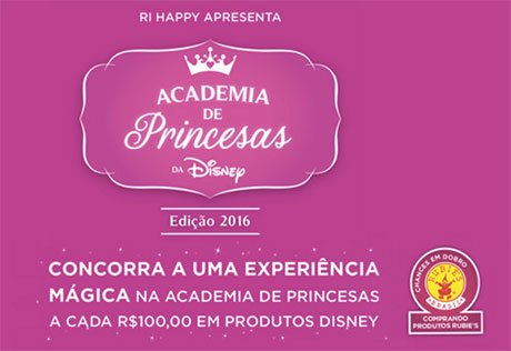 Promoção “Academia de Princesas Disney”! Na Promoção “Academia de Princesas da Disney”, das lojas Ri Happy, serão sorteados: 12 Kits contendo: Uma fantasia Disney (Cinderela, Bela ou Branca de Neve) …