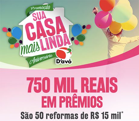 Concorra a R$ 15 mil no Hipermercado D’Avó! Na Promoção D’Avó, “Sua casa mais linda”, você concorre a: 50 Certificados de Barras de Ouro, no valor de R$ 15.000 cada, …