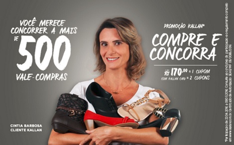 Promoção Kallan: Ganhe Vale Compras! Na Promoção “Compre e Concorra”, da Kallan Calçados, serão distribuídos: 10 Vale Compras Kallan no valor de R$ 119,99 cada 30 Vale Compras Kallan no …