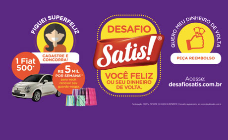 Concorra a um Fiat 500, 0 km! Na Promoção “Desafio Satis”, dos temperos Satis Ajinomoto, você concorre a: Um Certificado de Ouro no valor de R$ 60.000, com sugestão de …