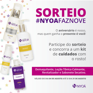 Concorra a Kit de Cuidados com a Pele do Rosto Este Kit da Nyoá contém: Nyoá Demaquilante Limpeza Profunda Nyoá Loção Tõnica Calmante Nyoá Revitalizador Nyoá Sabonete Secativo Para participar …
