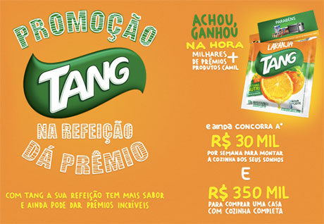 Promoção Tang 2015: Ganhe R$ 350 mil e mais! Na Promoção Tang 2015, “Tang na refeição dá prêmios”, você concorre a: Um Certificado de Ouro no valor de R$ 350.000, …