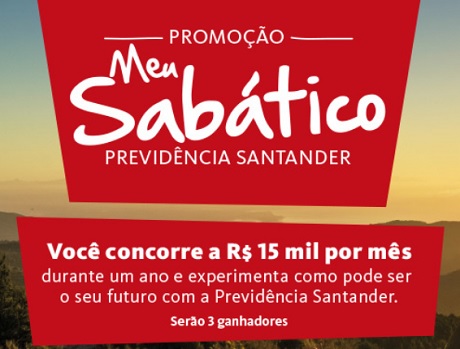 Promoção Santander: Concorra a R$ 180 mil! Na Promoção “Meu Sabático Previdência Santander”, do Banco Santander, você concorre a: 3 Certificados de Ouro no valor de R$ 180.000 Para participar: …