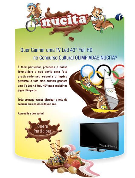 Promoção Nucita: Concorra a uma TV LED 43″! No Concurso Cultural Olimpíadas Nucita, você concorre a: Uma TV LED 43″ Full HD Para participar: Acesse o site www.nucita.com.br/concursos Faça seu …